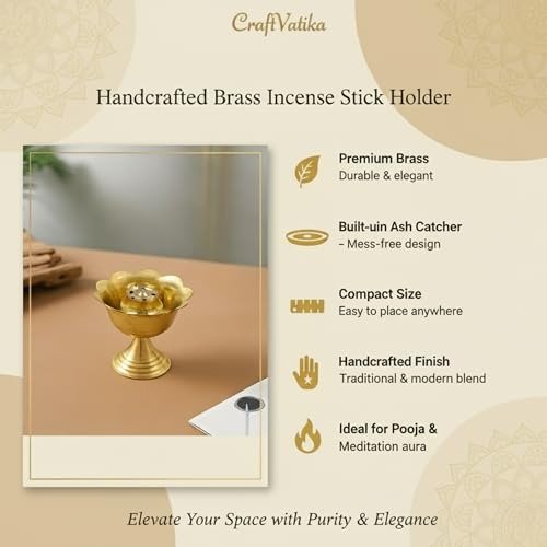 - ARTISANAL BRASS INCENSE STAND: Expertly crafted from high-grade brass, this incense holder boasts lasting durability, resistance to rust, and a refined appearance. Seamlessly merging traditional charm with practical use, it?s ideal for daily rituals, meditation sessions, or enhancing your home decor .