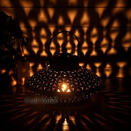 CraftVatika Iron Degchi doop stand Tealight Candle Holder – Tea Light Candle Stand Decorative Home Decoration Items for Living Room Netted Style (Pack of 1) – Fast Shipping to USA & Canada