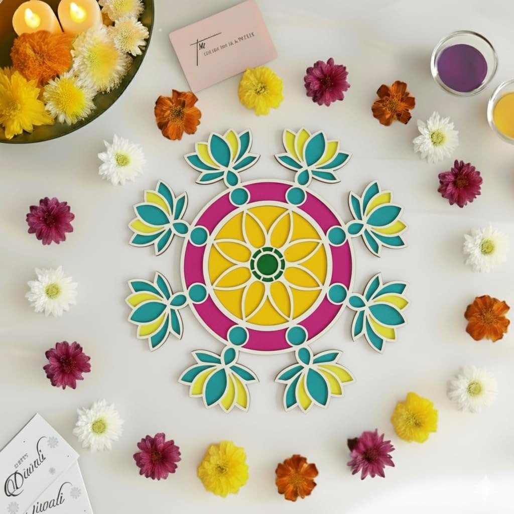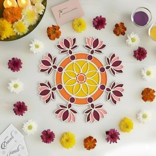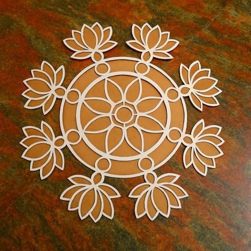 Craftvatika Rangoli Design for Diwali Decoration Item for Home and Diwali Gifts – 11.3 Inch Rangoli Stencils for Office & Living Room, Hall Diwali Festival Item (Lotus Design 11.3 Inch) – Fast Shipping to USA & Canada