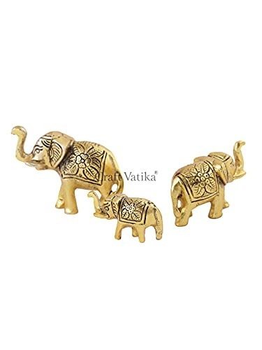 CraftVatika Set of 3 Metal Trunk Up Elephant Family Statue Showpiece Figurine -Fengshui Vastu Lucky – Decorative Items for Home Living Room Decor Living Room Office Desktop & Gifting,Corporate Gift – Fast Shipping to USA & Canada
