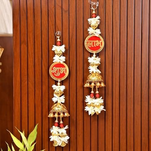 CraftVatika Shubh Labh Hanging for Main Door Entrance, Diwali Decoration for Home, Shubh Labh Latkan for Decorations, Wall Hanging Decoration for Festival (42 CM Height) – Fast Shipping to USA & Canada