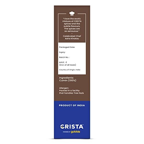- CRISTA Cumin (Jeera) is of superior quality, featuring a robust flavor and a brownish-grey hue.