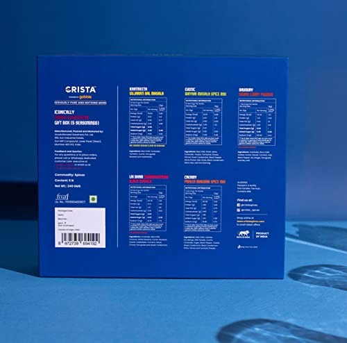 - PREMIUM GIFT BOX OF EXCLUSIVE SEASONINGS: Are you weary of the usual mithai, chocolate, and dry fruit gift boxes We are thrilled to declare that the era of monotonous ‘desi’ food gift boxes has come to an end! CRISTA Gift Boxes offer a contemporary and delightful assortment perfect for any celebration. Crafted from the finest quality materials, this robust magnetic gift box contains premium, flavorful, and authentic seasonings, making it an aromatic, practical, and meaningful gift for every occasion.
