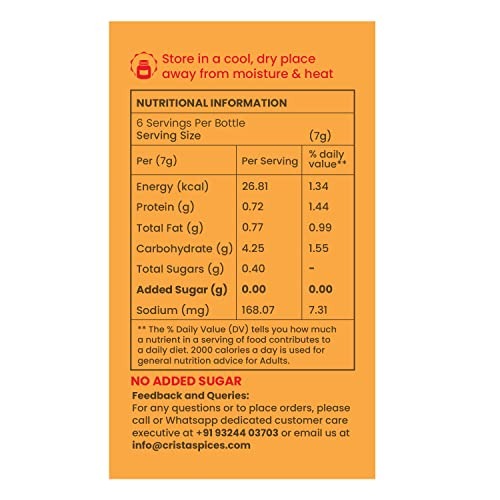 7 reviews for CRISTA Spicy Corn Curry Mix | Mixed Spices Blend | Zero added Colours, Fillers, Additives & Preservatives | Farm Fresh | No Added Sugar | Vegan | 45 gms