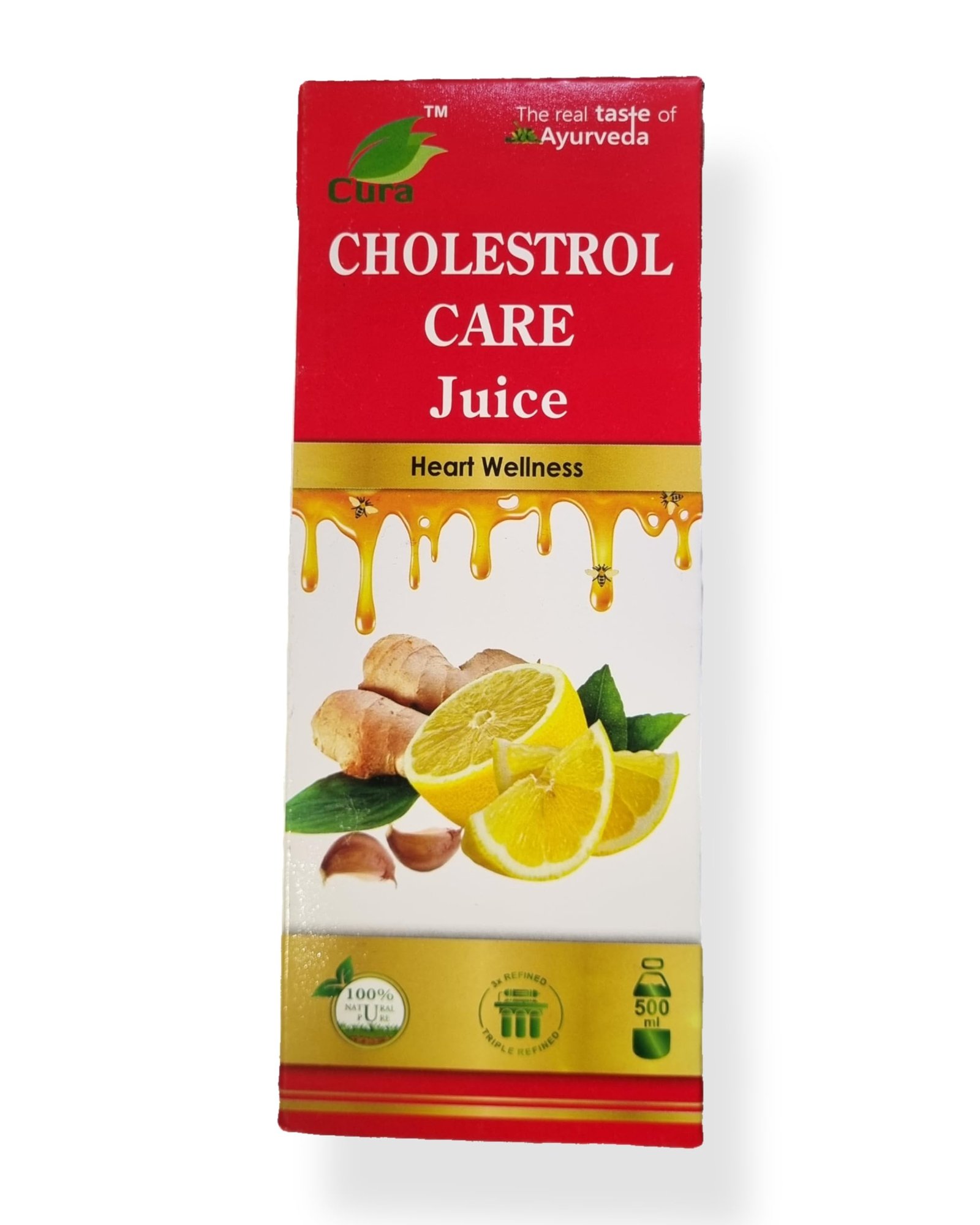 Cura Mahaveer Herbal & Ayurveda Cholesterol Care Juice | Contains Honey with Apple Cider Ginger Garlic, Sugar Free, Helps in Digestion Heart Health, Health Drink 500ml (pack of 2) – Fast Shipping to USA