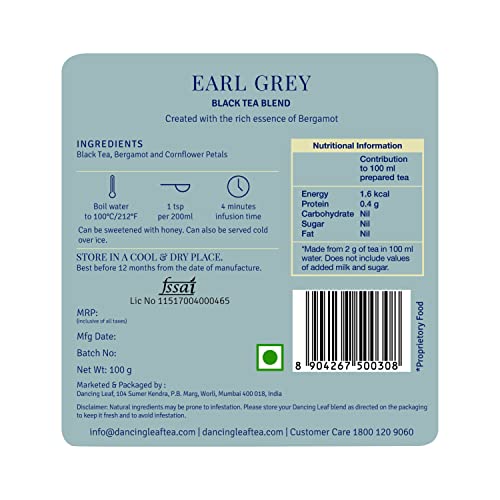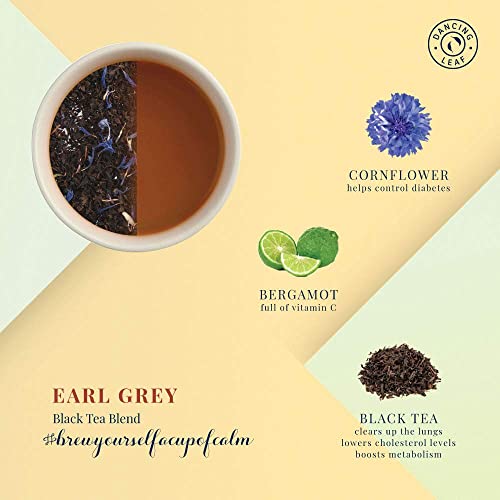 Dancing Leaf Earl Grey| Black Tea, Bergamot & Cornflower Petals | Black Tea Blend | Loose Leaf Pouch (100gms) – Fast Shipping to USA & Canada