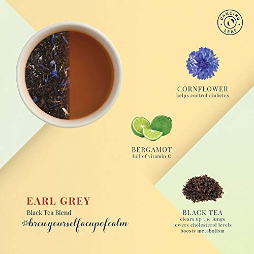Dancing Leaf Earl Grey| Black Tea, Bergamot & Cornflower Petals | Black Tea Blend | Loose Leaf Tin (75 GMS) – Fast Shipping to USA & Canada