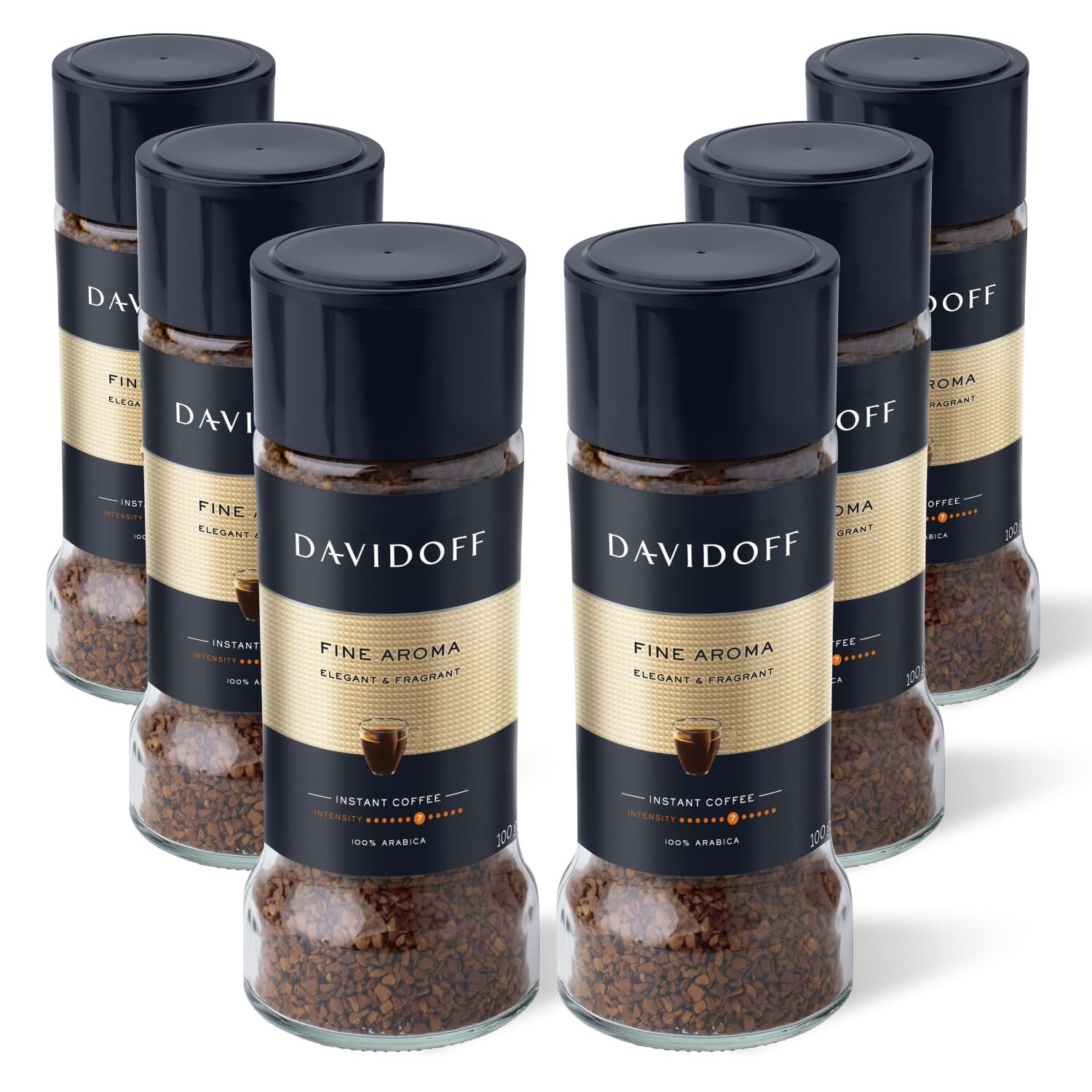 Davidoff Fine Aroma Instant Coffee 7/12 Intensity – 100% Arabica, 3.53 oz 100g, Granule, Glass Bottle – PACK OF 6 – Fast Shipping to USA & Canada
