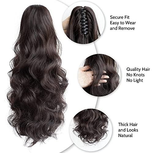 The claw clip ponytail extension is extremely easy and fast to apply. Just open the claw comb at the top of the ponytail and secure the extension over your own bun or ponytail. It?s much more convenient to wear than traditional ponytails. Length: 16 inches; Weight: approximately 4-4.5 oz. - HEAT RESISTANT: Avoid perming or dyeing the hair. Crafted from heat-resistant synthetic fibers, this ponytail extension is soft, smooth, voluminous, and natural-looking. It is easy to detangle and resists tangling. Since each ponytail extension is handmade, some shedding may occur, particularly during the initial use. We strive to reduce hair loss as much as possible.