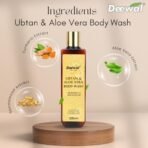 Immerse yourself in the natural goodness of Deewal Ubtan & Aloe Body Wash, a sumptuous cleanser designed to exfoliate, hydrate, and revitalize your skin. Enriched with the time-honored skincare advantages of Ubtan and the calming effects of Aloe Vera, this body wash is exceptional for achieving a luminous and healthy complexion. Ubtan, a renowned Ayurvedic beauty treatment, aids in sloughing off dead skin cells, eliminating impurities, and enhancing skin texture. When combined with Aloe Vera, celebrated for its moisturizing and soothing qualities, this body wash delivers deep hydration, leaving your skin feeling soft, smooth, and invigorated. The synergy of these natural ingredients brightens your complexion, balances skin tone, and diminishes pigmentation, imparting a youthful radiance to your skin.