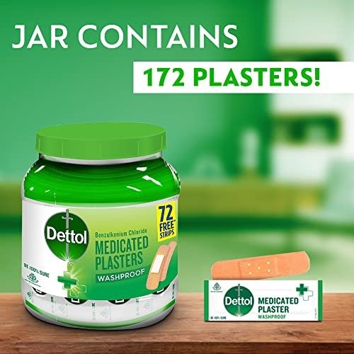 Dettol Medicated Plaster for Antiseptic and First Aid, Waterproof (Jar of 172 plasters) – Fast Shipping to USA & Canada