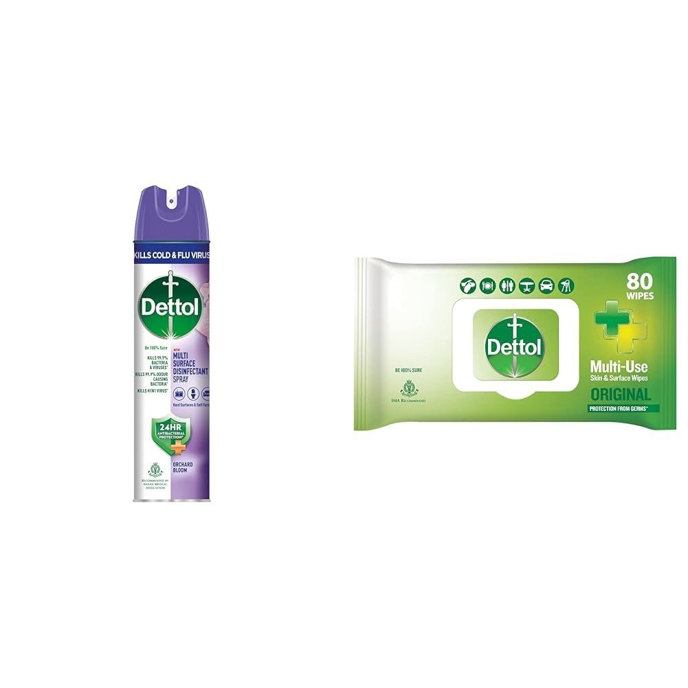 Dettol Multi Surface Sanitizer Disinfectant Spray (Orchard Bloom) + Original Multi-Use Skin & Surface Wet Wipes Combo – Fast Shipping to USA & Canada
