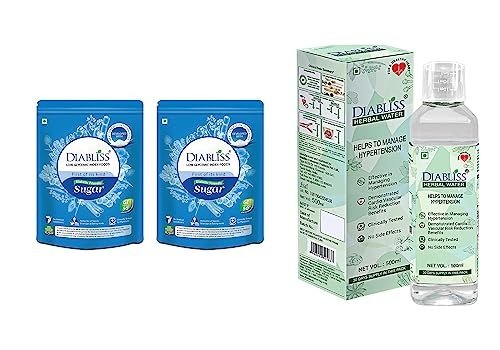 Diabliss Diabetic Friendly Herbal Cane Sugar – Free from Chemicals/Artificial Sweeteners – Low Glycemic Index (GI) – 500g Pouch (500g (Pack of 2) + Hypertension Management)