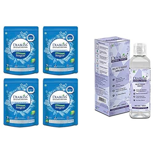 Diabliss Diabetic Friendly Herbal Cane Sugar – Free from Chemicals/Artificial Sweeteners – Low Glycemic Index (GI) – 500g Pouch (500g (Pack of 4)+Herbal Water to Boost Immunity)