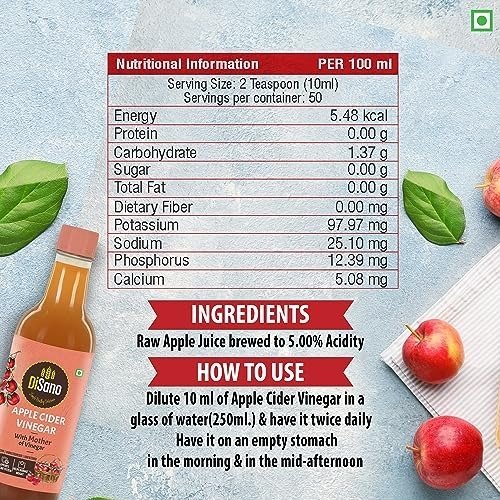 DiSano Apple Cider Vinegar (ACV) with Mother, Raw, Unfiltered, Undiluted -500ml – Fast Shipping to USA & Canada