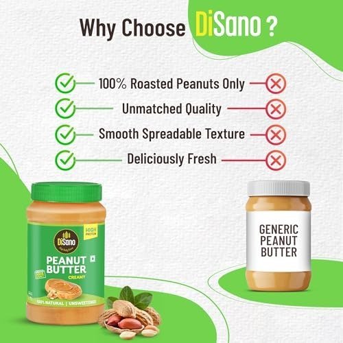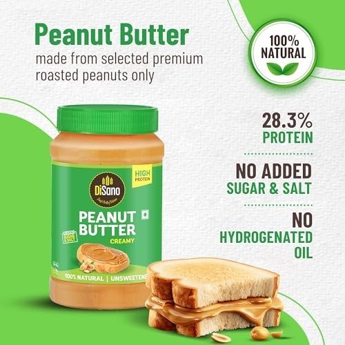 DiSano Natural Peanut Butter Creamy 1kg, Unsweetened, High Protein Peanut Butter with No Added Sugar or Salt, Nut Butter Spread, 100% Roasted Peanuts – Fast Shipping to USA & Canada
