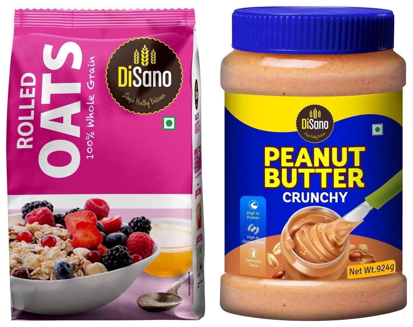 Disano Peanut Butter Crunchy 924g & Disano Rolled Oats, Naturally Gluten free, 1kg – Fast Shipping to USA & Canada