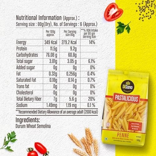 DISANO Penne Pasta,500gm,100% Durum Wheat,No Maida,High Protein & Fiber – Fast Shipping to USA & Canada