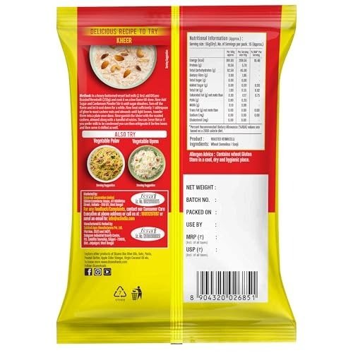 DiSano Roasted Vermicelli is very tasty, easy to cook for breakfast and dinner. Made from Wheat Semolina (Sooji).
