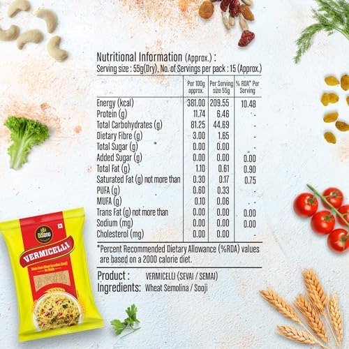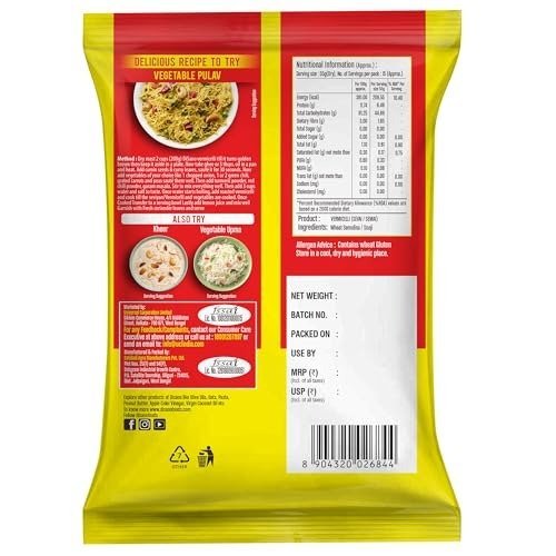 DiSano Vermicelli is very tasty, easy to cook for breakfast and dinner. Made from Wheat Semolina (Sooji).