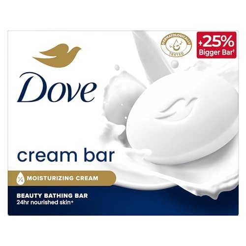 The Dove Cream Bathing Beauty Bar merges a gentle cleansing formula with Dove?s signature ? moisturizing cream, ensuring that your skin becomes softer, smoother, and more radiant with each shower. What sets Dove apart? Unlike typical soaps that can strip your skin of its natural moisture, Dove?s beauty bars cleanse delicately while helping to preserve your skin’s inherent hydration. While conventional soaps may leave your skin feeling parched and tight, the Dove Cream Beauty Bar aids in maintaining your skin’s natural moisture barrier, keeping it well-hydrated. Its nourishing and moisturizing formula results in skin that is soft, smooth, and luminous. Dove is the top soap brand endorsed by dermatologists, being pH balanced and gentle enough for all skin types. Its mild cleansers are also appropriate for dry and sensitive skin. Dove not only cares for your skin but also effectively eliminates germs. While regular soap can lead to dryness, the classic moisturizing formula of Dove bars ensures your skin remains softer, smoother, and more radiant. For optimal results, create a lather with your Dove Cream Beauty bathing bar and gently massage the rich, creamy foam over your face and body before rinsing thoroughly. Dove prioritizes skin health and effectively washes away germs. Experience the Dove difference and enjoy soft, smooth, and glowing skin.