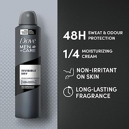 - EXPERIENCE THE REFRESHING SENSATION: Dove Men+Care Invisible Dry Deodorant Spray offers enduring freshness that invigorates your spirit for an impressive 48 hours.