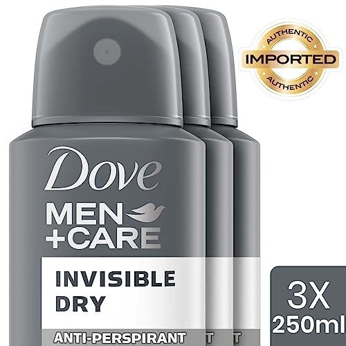 Dove Men+Care Invisible Dry Spray Antiperspirant Deodorant, Up To 48 hrs Protection From Sweat & Odour, Instantly Dry for Cleaner Feel & Leaves No White Marks or Stain, Soothes & Moisturises Skin, Warm, Oriental Scent, 250ml (Pack of 3) – Fast Shipping to USA & Canada