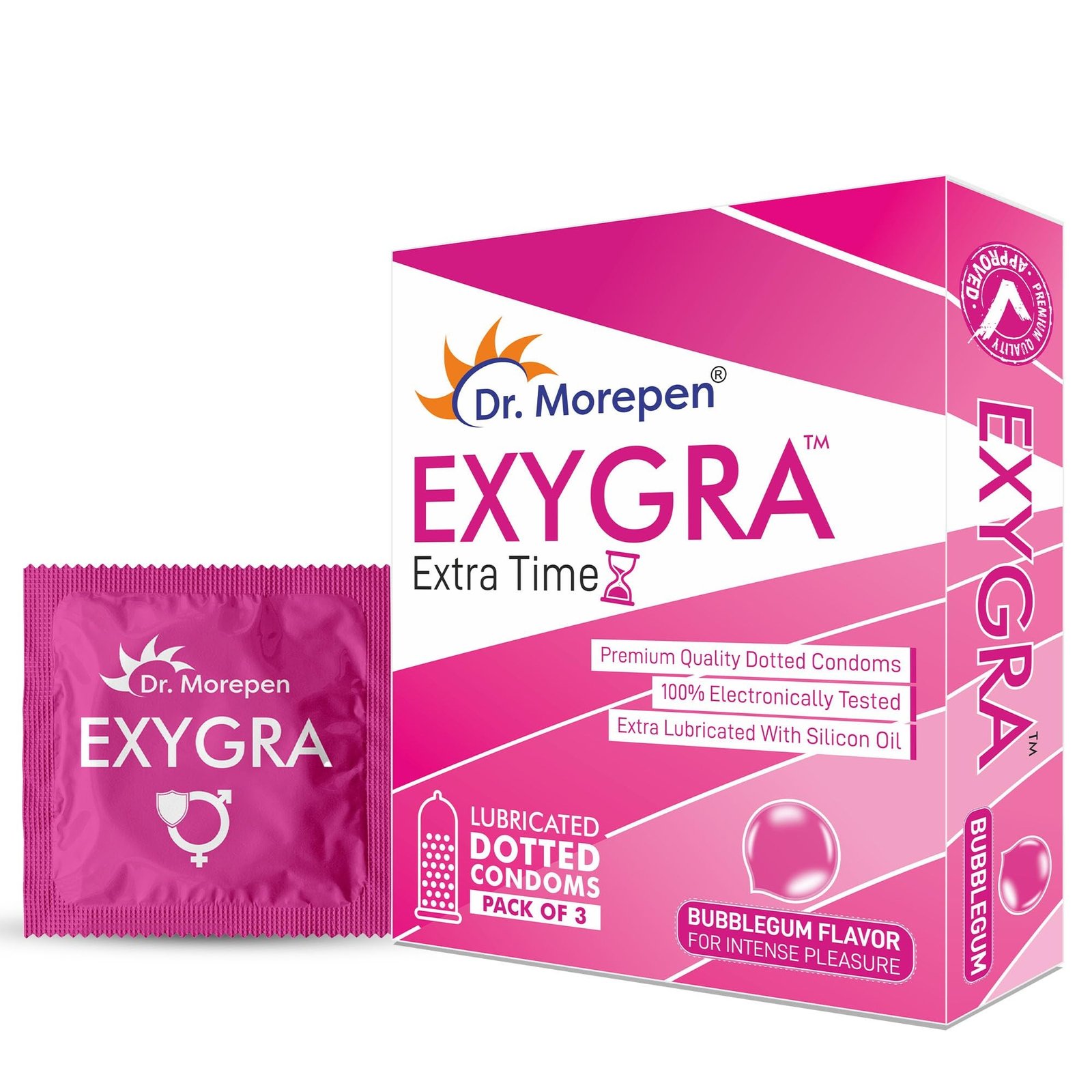 Dr. Morepen Exygra Condoms- Ultra-thin, Lubricated, Extra Dotted, Bubblegum Flavour 30 count – Fast Shipping to USA