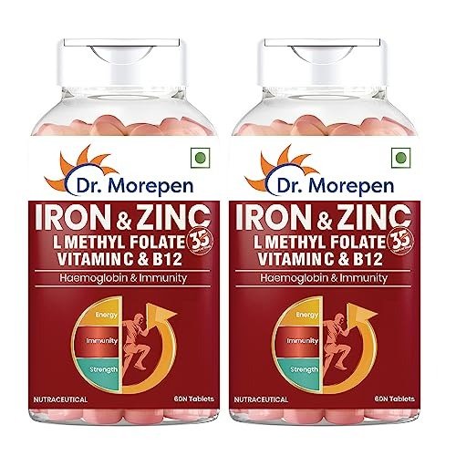 11 reviews for Dr. Morepen Iron & Zinc Tablets|Enriched with Iron,Zinc,Vitamin C & B12|Natural & Safe for Unisex|60 Veg Tablets (Pack of 2), 500 grams – Fast Shipping to USA