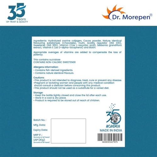 11 reviews for DR. MOREPEN Marine Collagen Skin Protein Powder With Hyaluronic Acid, Vitamin C, Sesabania & Biotin Chocolate Flavour | 25 Servings – 250g – Fast Shipping to USA