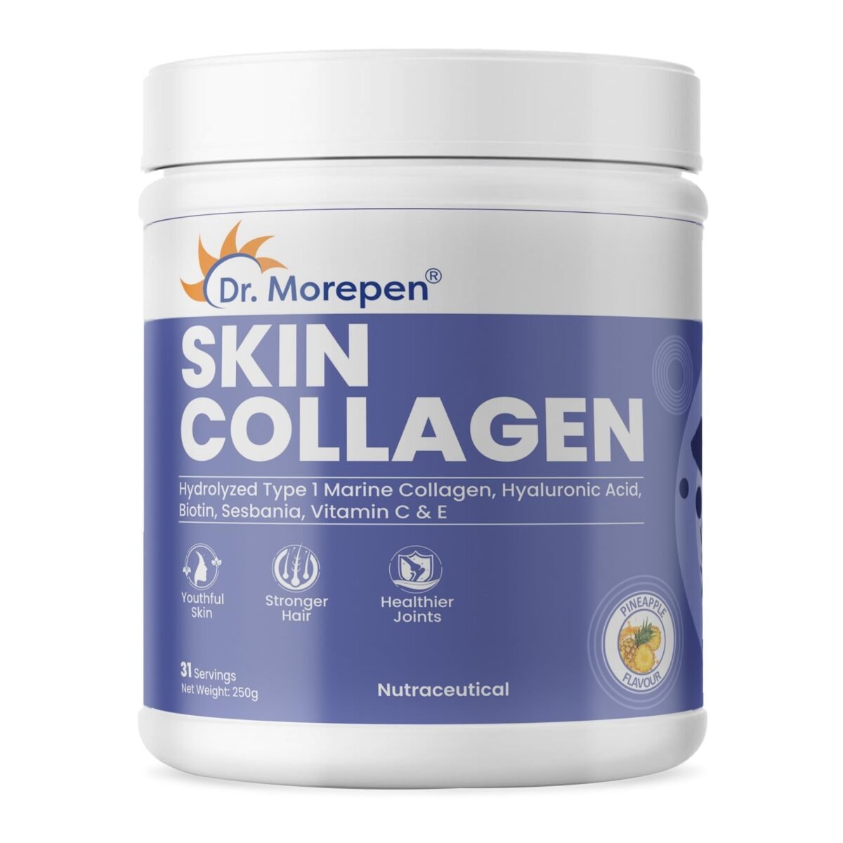 DR. MOREPEN Marine Collagen Skin Protein Powder With Hyaluronic Acid, Vitamin C, Sesabania & Biotin | Pineapple Flavour | 250g – Fast Shipping to USA