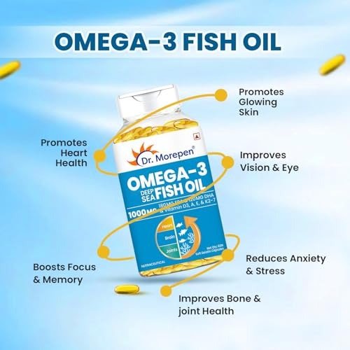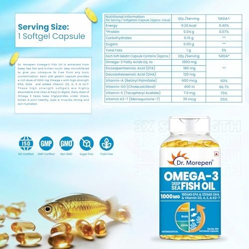 11 reviews for DR. MOREPEN Omega 3 Deep Sea Fish oil 1000 mg Omega with 300 mg DHA with Vitamin A, D3, E & K27 | 60 softgels – (Pack of 1) – Fast Shipping to USA
