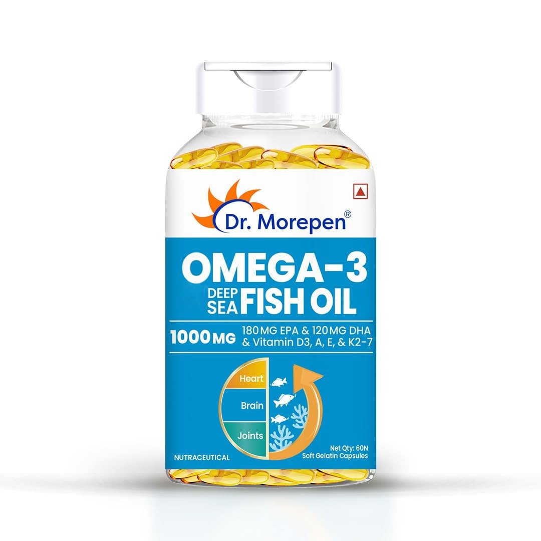 DR. MOREPEN Omega 3 Deep Sea Fish oil 1000 mg Omega with 300 mg DHA with Vitamin A, D3, E & K27 | 60 softgels – (Pack of 1) – Fast Shipping to USA