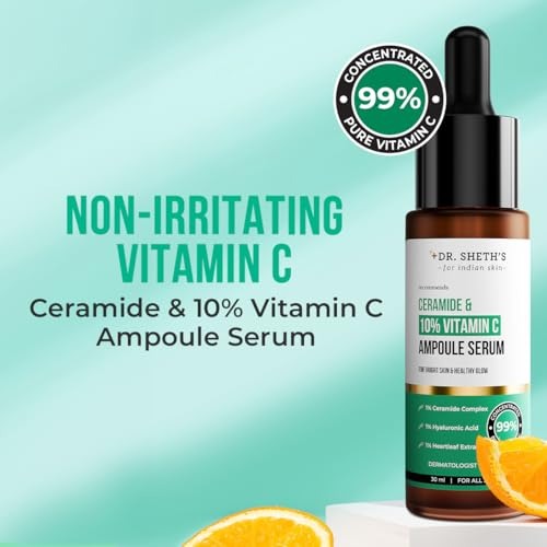 Dr. Sheth’s Non-Irritating Ceramide & 10% Vitamin C Ampoule Serum | Reduces Dullness & Dark Spots | Brightens & Repairs Skin Barrier | For Beginners | 99% Pure Grade Vitamin C | All Skin Types | 30 ml – Fast Shipping to USA
