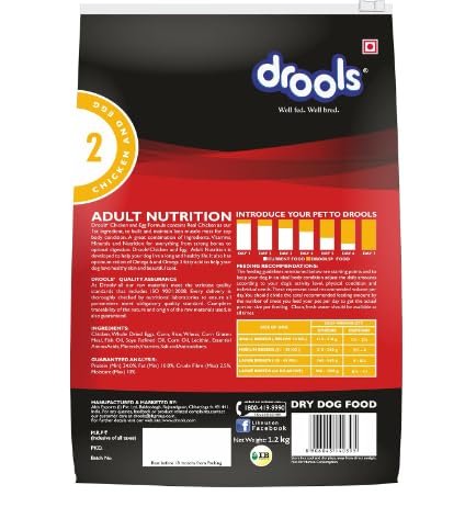 Drools Chicken and Egg is specifically designed for the growth of puppies and the maintenance of adult dogs. Featuring real chicken as the primary ingredient, it supports the development and preservation of lean muscle mass for optimal physical condition. Crafted with only the highest quality ingredients, this formula provides everything your dog requires to remain joyful and healthy. It offers an excellent blend of components, vitamins, minerals, and nutrients that promote strong bones and efficient digestion. Drools Chicken and Egg is formulated to enhance your dog’s longevity and overall well-being. Enriched with Omega 6 and 3 fatty acids, it contributes to healthy skin and a lustrous coat. The recipe includes chicken, whole dried eggs, corn, rice, wheat, corn gluten meal, fish oil, refined soya, corn oil, lecithin, essential amino acids, minerals, vitamins, salt, and antioxidants.