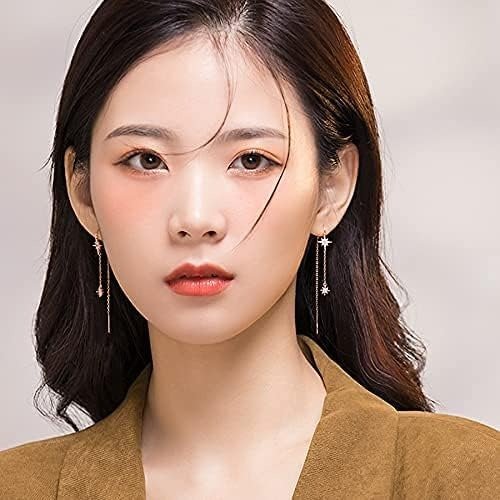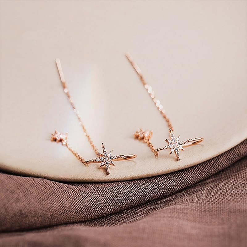 El Regalo Fancy CZ Stars Needle Threader Earrings- 2 Ways Stars Tassel Long Threader Fashionable Earrings for Girls & Women – Fast Shipping to USA & Canada