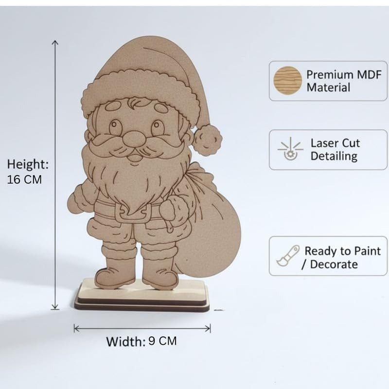 Infuse your festivities with a spark of imagination and holiday cheer using this Wooden Christmas Santa Craft Model. Expertly crafted from high-quality MDF wood, this laser-cut tree boasts a sleek finish and detailed design, making it a breeze to paint and personalize. Ideal for crafters, students, and holiday decorators alike, it invites endless creativity-embellish it with paints, glitter, stickers, or even LED lights. Whether you use it as a Christmas ornament, a school project, an art piece, or a charming table centerpiece, the creative options are limitless! This environmentally friendly craft model inspires hands-on learning, artistic expression, and family togetherness, making it a delightful activity for both children and adults. Bring home this DIY Christmas Santa kit and add a personal touch to your holiday decorations!
