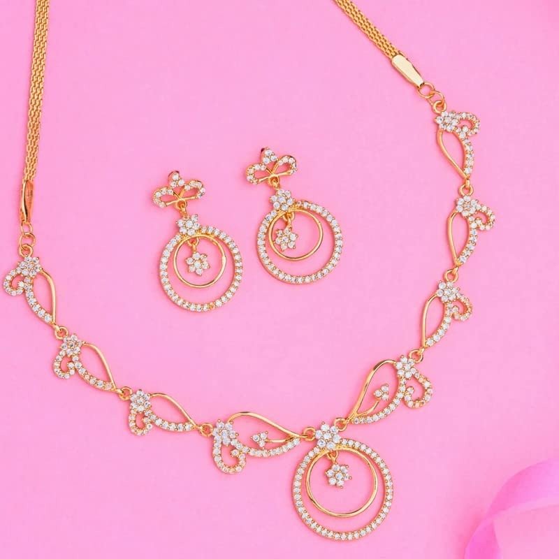 Estele 24 Kt Gold Plated American Diamond Circular Necklace Set for Women – Fast Shipping to USA & Canada