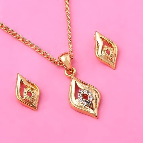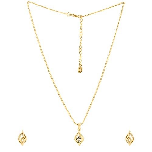 Estele 24kt Gold Plated Elegant Style Pendant and Matching Earring for Women with Austrian Crystals, Adjustable (8909 NKER) – Fast Shipping to USA & Canada