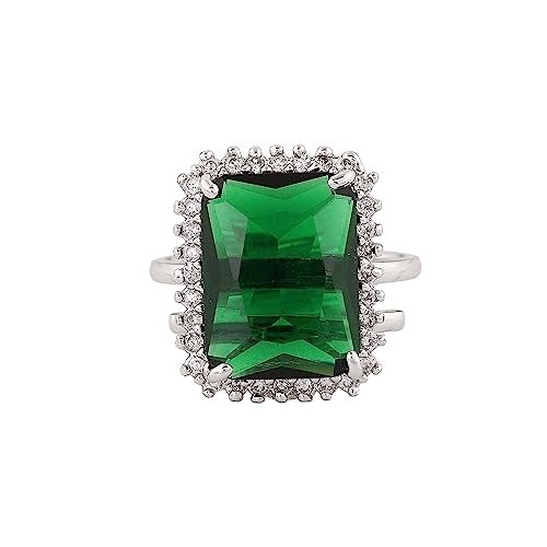 Estele Rhodium Plated Rectangular Designer Adjustable Finger Rings with Cubic Zirconia Stones for Girls & Women’s – Fast Shipping to USA & Canada