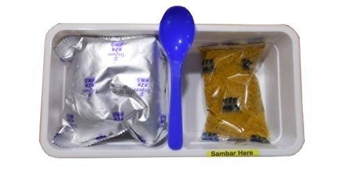Savor a delectable dish hailing from Tamil Nadu, featuring a blend of rice, dhal, and aromatic seasonings, all enhanced with cashew nuts, presented in one compartment – 240 grams of Pongal. This delightful Pongal pairs wonderfully with a rich gravy of spiced Sambar, a lentil-based sauce infused with tamarind and an assortment of dehydrated vegetables, served in a second compartment weighing 150 grams. Altogether, this 390-gram serving of traditional South Indian breakfast offers a fantastic way to kick off your day!