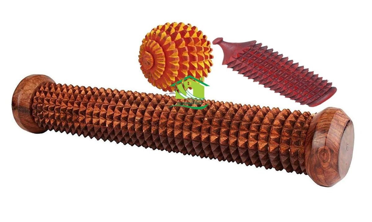 Crafted from high-quality wood, this product is primarily designed for comprehensive body massage and assists in maintaining blood circulation. It showcases the traditional artistry of Indian craftsmen by providing exquisite wooden handicrafts created by FA INDUSTRIESin India. This is an authentic design, not a replica! Each piece is made by skilled rural artisans from India. Support local craftsmanship by purchasing these items. This set includes a wooden three-roller foot massager for stress relief and acupressure, featuring a premium Surkh roller, along with a foot massager and a finger and face massager.
