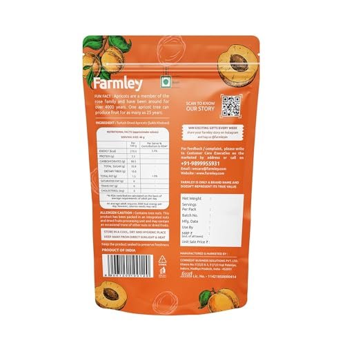 - ONLY GOOD, NO BAD: Farmley brings to you the most premium dried apricots that are 100% Natural. No Adulteration, No Chemicals, No Preservatives, Non-GMO.