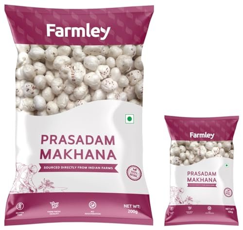- Product 1: DIRECTLY SOURCED FROM THE FARM: Farmley Prasadam Makhana, also known as fox nuts, are obtained straight from the farm and are meticulously packaged in a HACCP certified facility, ensuring high hygiene standards.