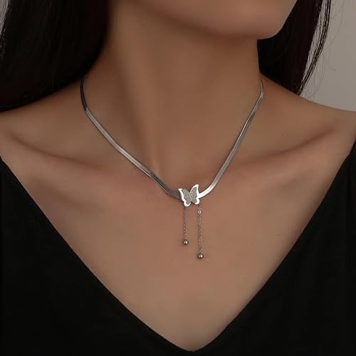 - Introducing the Fashion Frill Exclusive Butterfly Chain Necklace, adorned with a stunning silver ring embellished with cubic zirconia, from our Women’s Jewelry Collection. This exquisite silver-plated necklace features a captivating butterfly charm and comes with an adjustable ring, making it a perfect gift for special occasions such as Valentine’s Day, anniversaries, or birthdays for the special women in your life, including girlfriends and wives.