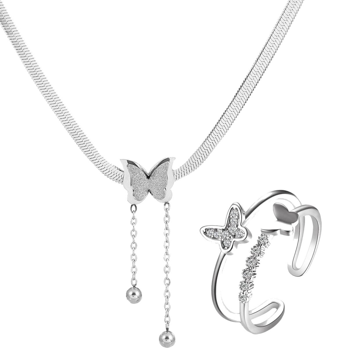 Fashion Frill Butterfly Pendant Necklace For Women Butterfly Silver Adjustable Finger Ring For Women Girls Love Gifts Jewellery Combo – Fast Shipping to USA & Canada