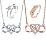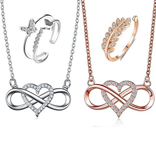 - Fashion Frill Women’s Jewelry Set: Infinity Heart-Shaped Silver Chain Pendant Necklace with Ring Accessories Collection.