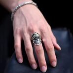 - Introducing the latest addition to our exclusive collection of rings for men: the Fashion Frill Finger Ring. This contemporary design features a striking skull motif paired with an eagle emblem on the cap, making it a standout piece for any stylish boy. Crafted for durability and flair, this ring is the perfect accessory for the modern man who values both style and quality.
