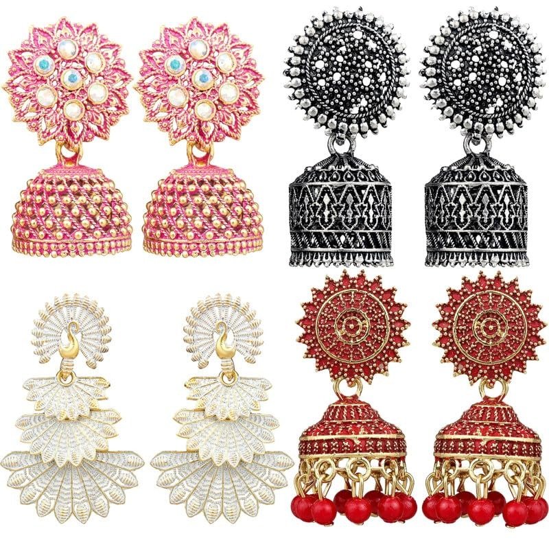 Fashion Frill Multicolor Oxidised Earrings Jhumka Set For Women Girls Stylish Traditional Pearl Small Jhumki Earings Pair Combo Of 4 – Fast Shipping to USA & Canada
