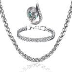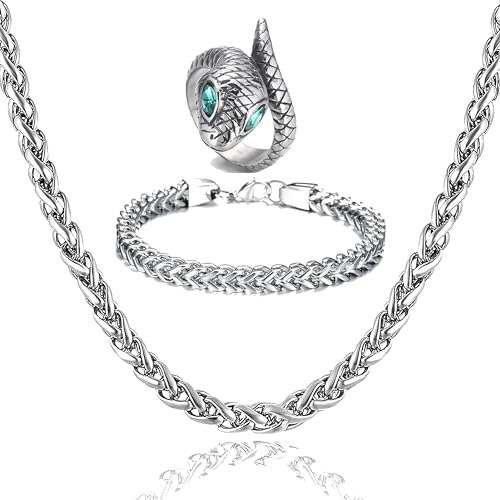 Fashion Frill Silver Chain and Bracelet for Men and Boys With Snake Ring Jewellery Combo – Stainless Steel – Fast Shipping to USA & Canada